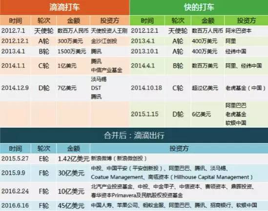 滴滴与优步中国合并前的融资史(腾讯科技配图)