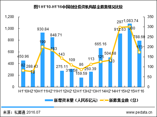 2016上半年中国创业投资市场基金募资活跃度虽然有所下降,但大型机构的募资金额仍然十分庞大,致使募集总额下降幅度并不是很明显。